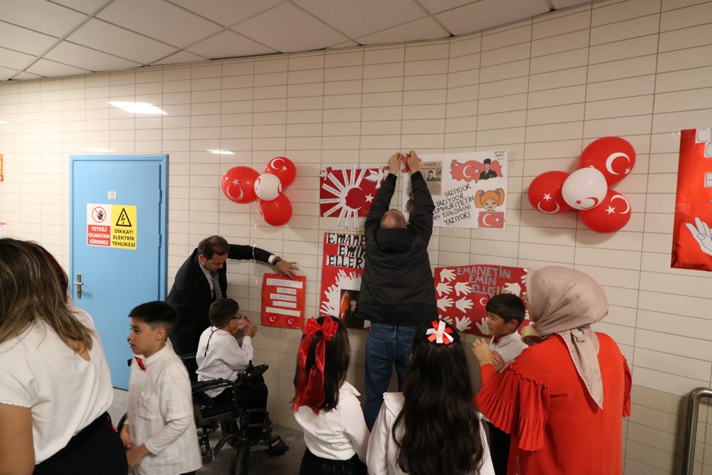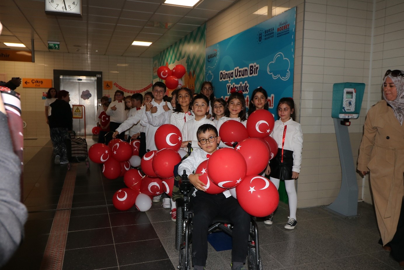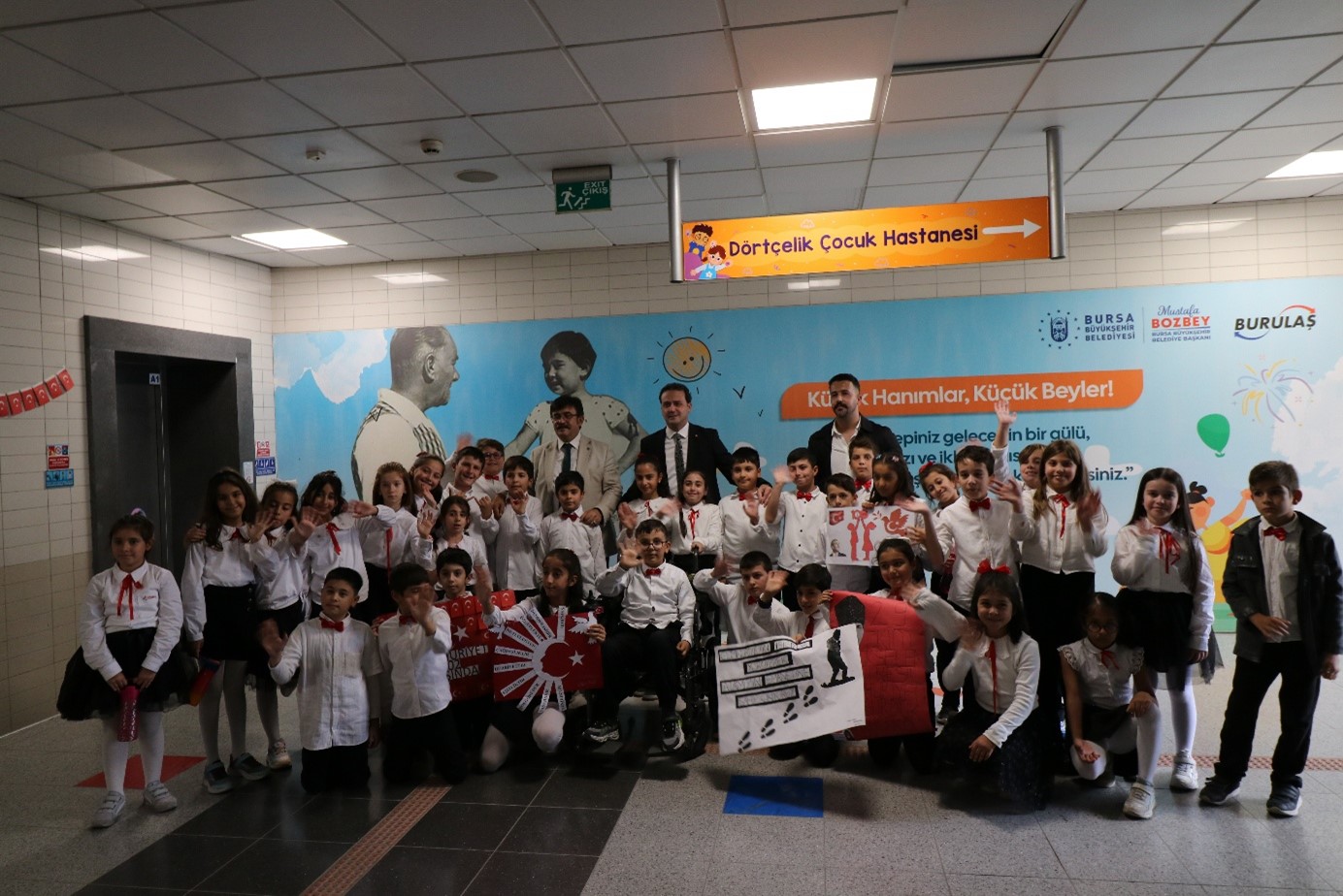 BURULAŞ, 29 Ekim Cumhuriyet Bayramı kapsamında anlamlı bir etkinliğe ev sahipliği yaptı. Yunuseli Şehit Gürcan Ulucan İlkokulu öğrencileri, Ertuğrul Dörtçelik Çocuk Hastanesi İstasyonu’nu kendi hazırladıkları fotoğraflar, pankartlar, bayraklar ve balonlarla süsleyerek Cumhuriyet coşkusunu istasyona taşıdı.