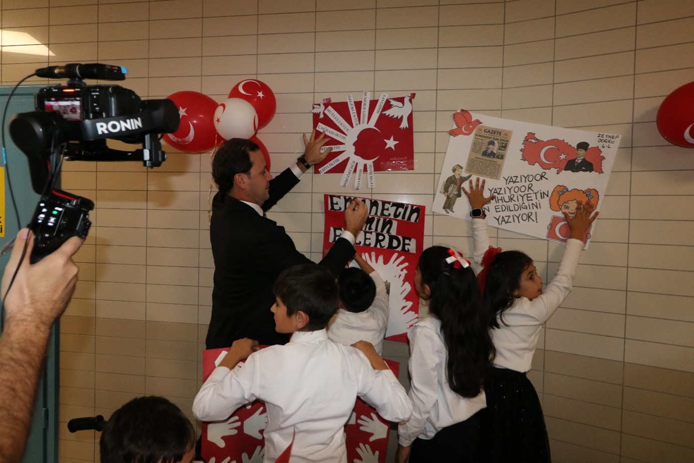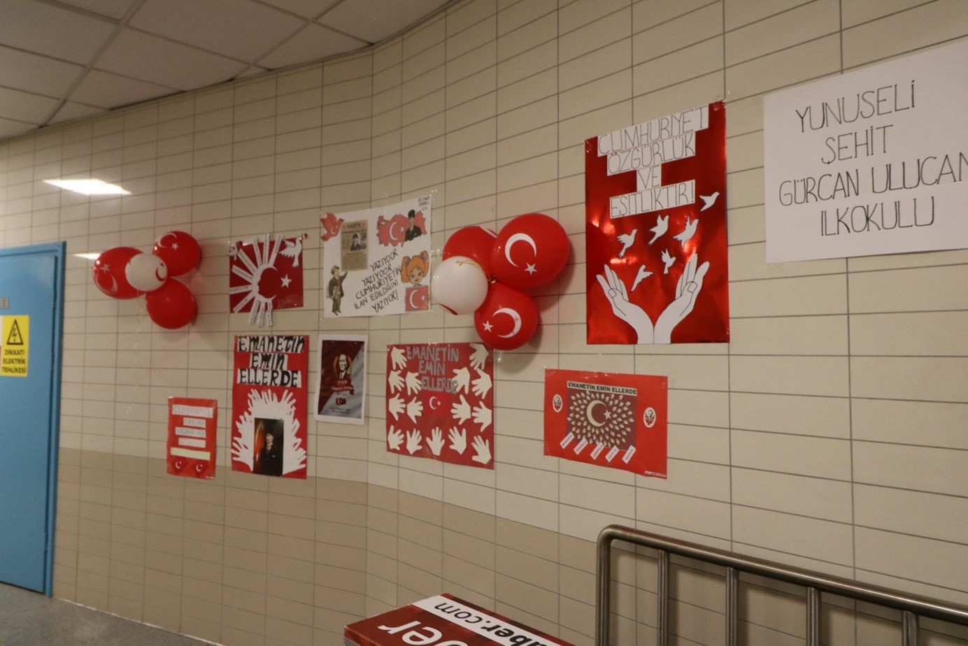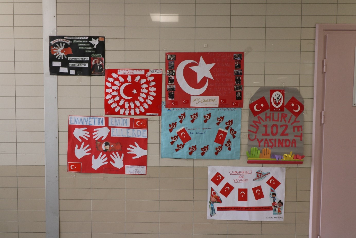 Cumhuriyet’in 102. yıl dönümü dolayısıyla düzenlenen etkinlikte minik öğrenciler, el emeğiyle hazırladıkları çalışmalarla istasyonu kırmızı-beyaz renklere bürüdü. “Emanetiniz emin ellerde” temasıyla gerçekleştirilen kutlamada öğrenciler, Atatürk’e ve Cumhuriyet’e olan sevgilerini büyük bir coşku ve heyecanla dile getirdi.