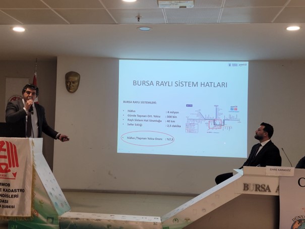 Bursa Büyükşehir Belediyesi iştiraklerinden BURULAŞ, TMMOB Harita ve Kadastro Mühendisleri Odası Bursa Şubesi tarafından düzenlenen “Bursa Ulaşımında Akıllı Sistemler ve Gelecek Vizyonu” temalı Dünya CBS Günü etkinliğine katılarak, kent içi ulaşımda hayata geçirilen akıllı ulaşım uygulamalarına ve geleceğe yönelik stratejik planlamalara ilişkin kapsamlı bir sunum gerçekleştirmiştir.   BURULAŞ tarafından gerçekleştirilen sunumda;